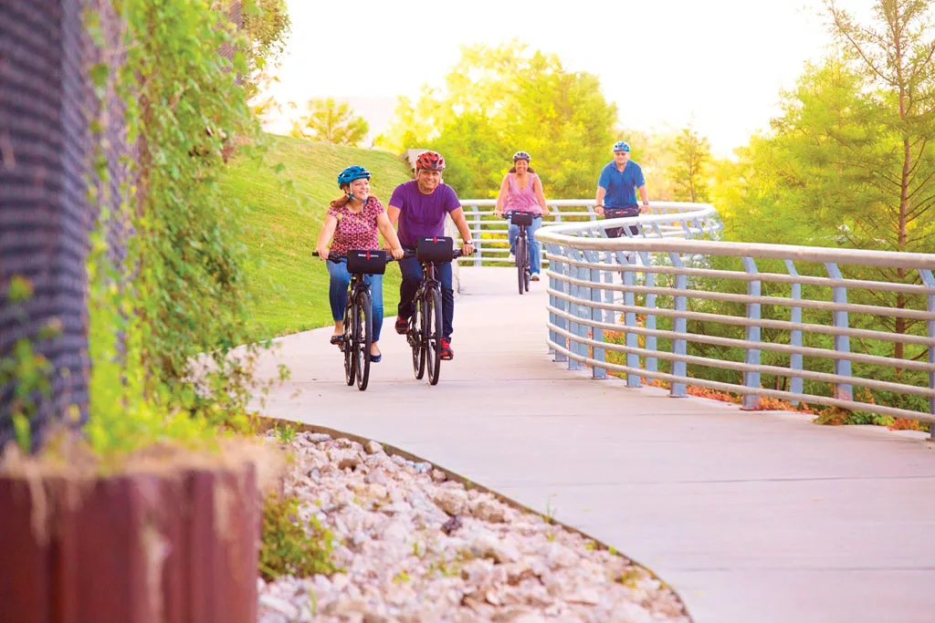 This trail is one of the most popular in Houston, and for good reason. The bike path along the Buffalo Bayou river runs through the park of the same name, offering cyclists panoramic views of the downtown skyline. The route is ideal for both beginners and families because it’s flat and well-equipped. Along the way, you can see: