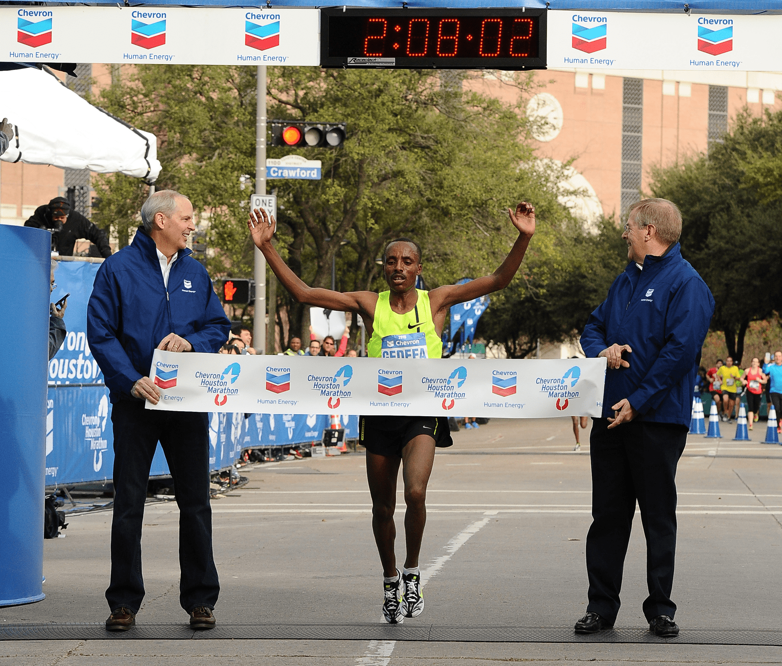 На даний час Chevron Houston Marathon є одним з найбільш престижних та велелюдних марафонів США. А почалося все у далекому 1972 році. Взагалі в США 70-ті роки минулого століття вважаються біговим бумом, оскільки він став дуже модним в цей час. Х’юстон не став винятком на цій хвилі популярності цього виду спорту. Тож прихильники здорового способу життя, бігу та публічних заходів вирішили провести демонстративний забіг вулицями Х’юстона. Хоча вони й доволі широко прорекламували майбутню подію, але відгукнулося всього 113 людей. Та попри все 30 грудня цього ж року відбувся дебютний забіг Houston Marathon. На той час він називався саме так. Призів на той час не було, окрім пам’ятних медалей та відзнак.